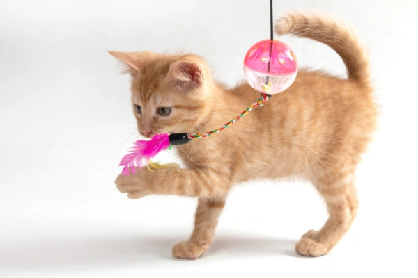 Play is a safe way to engage with a shy kitten without direct contact. Wand toys, feather teasers, and laser pointers allow them to chase and pounce while keeping their personal space intact.